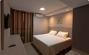 No Hotel Foz do Iguaçu, você encontra tudo para uma estadia confortável, prática e especial. Nossos quartos têm ar-condicionado, Wi-Fi gratuito, TV a cabo e minibar, ideais para relaxar após os passeios. Comece o dia com um café da manhã delicioso, com pães frescos, bolos caseiros, frutas, sucos e opções quentinhas feitas com carinho.
